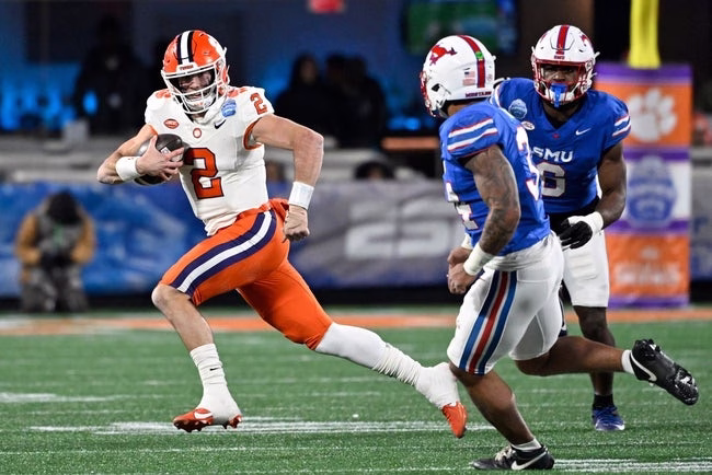 The Clemson Tigers are 10-3 (7-1) this season after they defeated SMU by a score of 34-31 in the AAC Championship game. Clemson led 24-7 at halftime, but they needed a 56-yard field goal as time expired to get the win. The Tigers were outgained by a total of 458-326, won the turnover battle 2-0, and went 7-17 on third down in the game. Cade Klubnik threw for 262 yards and four touchdowns, while Bryant Wesco Jr. caught eight passes for 143 yards and two scores in the win.